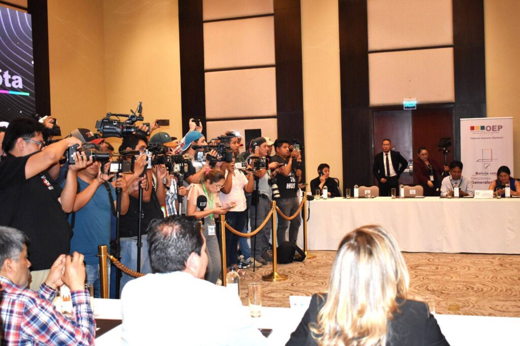 Imagen referencial de periodistas cubriendo un acto del TSE en Santa Cruz. Foto: TSE