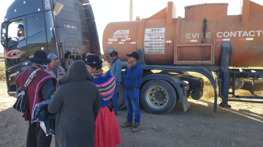 Las autoridades originarias interceptaron en mayo de 2024 dos cisternas que transportaban ácido sulfúrico, lo que evidenció el uso de químicos peligrosos sin control ni autorización adecuada. Aunque el Ministerio de Medio Ambiente y Agua (MMAyA) había otorgado licencias ambientales a solo cinco empresas hasta 2024, posteriormente amplió seis licencias más, incluso cuando un comité interinstitucional ya había comenzado a investigar las irregularidades, denunció la activista.