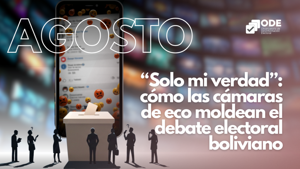 Durante el mes de agosto, los contenidos sobre el proceso electoral se incrementaron y con el resultado definido para el balotaje, las interacciones en redes sociales derivaron en una polarización hacia dos opciones políticas: Alianza Libre y el Partido Demócrata Cristiano (PDC). Una ola de bulos fue direccionada a los candidatos a presidente y vicepresidente. El monitoreo de Bolivia Verifica, durante siete meses y medio, identificó que aproximadamente 7 de cada 10 contenidos analizados estaban directamente relacionados con el proceso electoral y la mayoría fueron fabricados o manipulados.