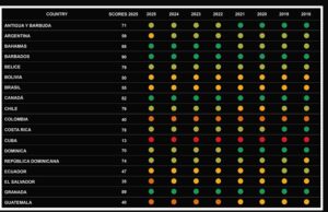 En 2025, Bolivia alcanzó un puntaje de 50 puntos en la evaluación de libertades cívicas elaborada por Civicus Monitor, ubicándose otra vez en la categoría