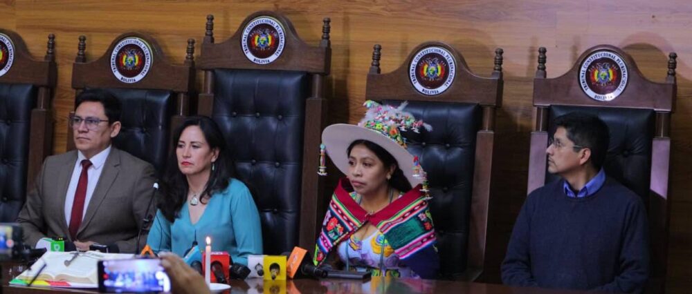 Fuente: Ideas textuales Por fin el Tribunal Constitucional Plurinacional quedó libre de cinco ciudadanas y ciudadanos, ex magistrados, que usurpando funciones distorsionaron la función de la Justicia Constitucional, emitiendo Sentencias, Declaraciones y Autos constitucionales que infringen la Constitución, que han debilitado la institucionalidad democrática y causado graves daños económicos al Estado y perjuicios a los